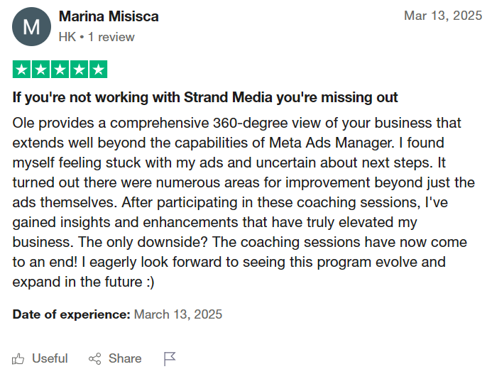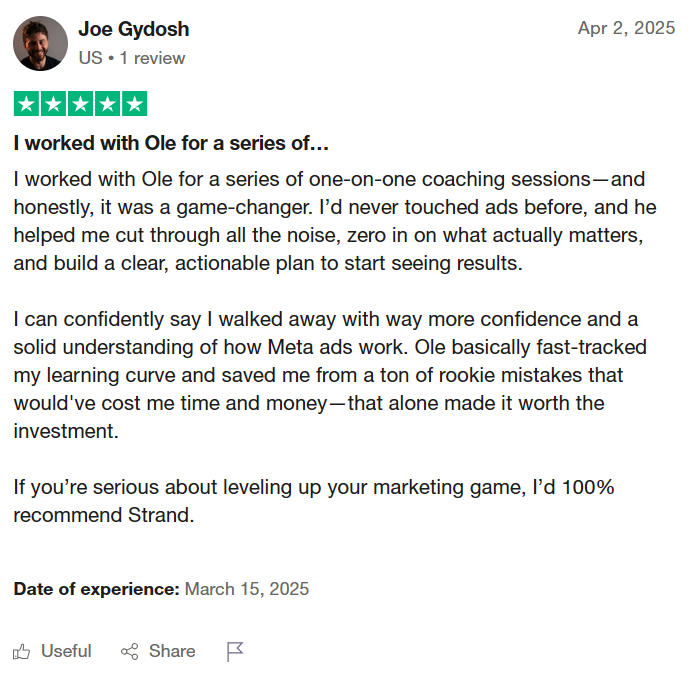 Where needed, I’ll also plug you directly into my private network of vetted experts, trusted specialists in Google Ads, CRO, creative production, tracking setup, and more. This way you’re not stuck wasting time and money vetting freelancers or agencies yourself.